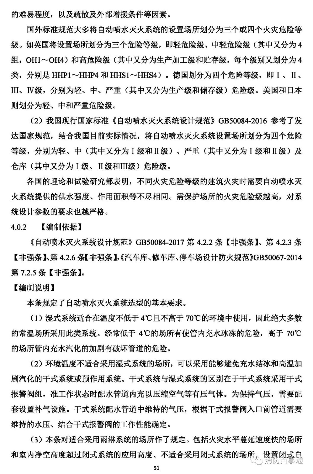 4.0.1 工業(yè)和民用建筑內(nèi)的自動噴水滅火系統(tǒng),其噴水強度、作用面積、噴頭工作壓力、噴頭間距等參數(shù)應(yīng)與其火災(zāi)危險等級、室內(nèi)凈空高度等相適應(yīng)。
