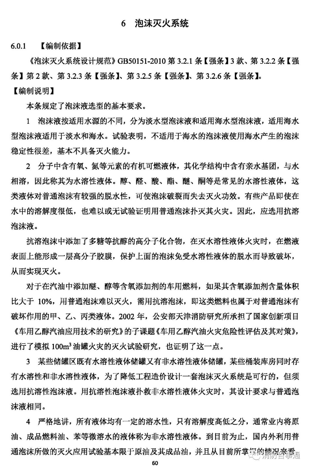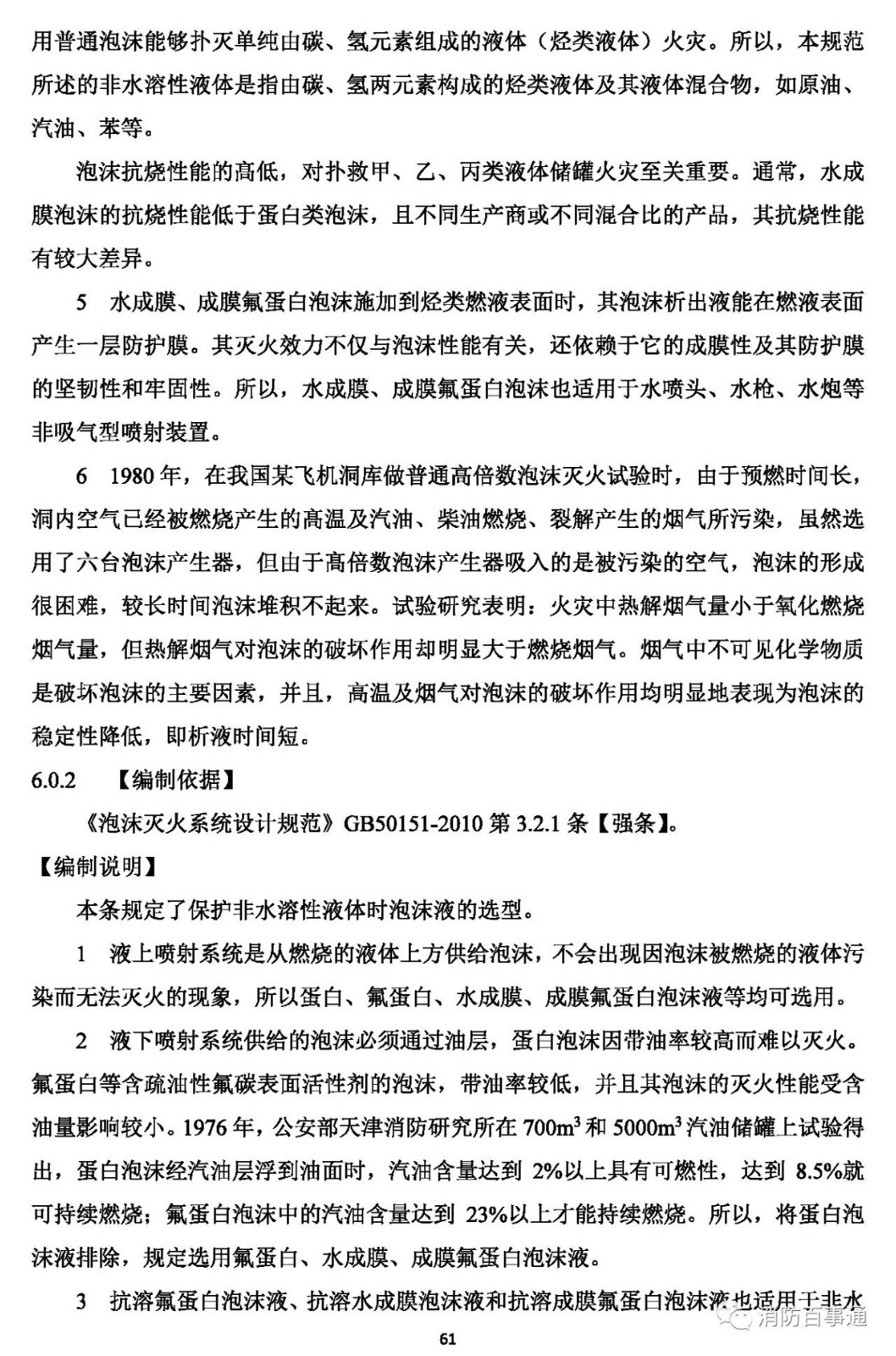 6.0.1 保護場所中所用泡沫液應(yīng)與系統(tǒng)類型和撲救的可燃物性質(zhì)相適應(yīng),并應(yīng)符合下列規(guī)定: