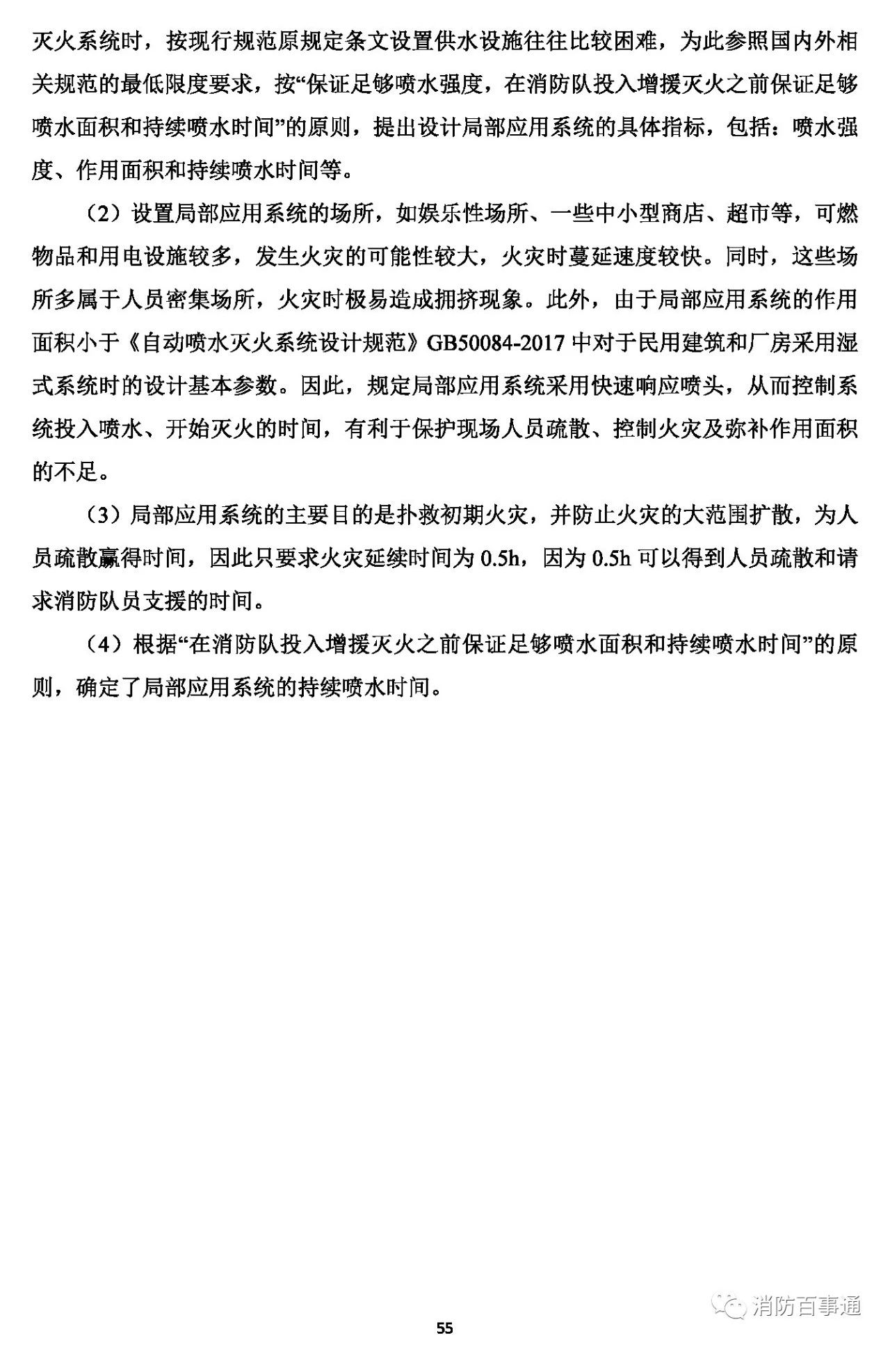 4.0.9 建筑中局部應(yīng)用系統(tǒng)保護區(qū)域內(nèi)的房間和走道均應(yīng)布置快速響應(yīng)噴頭,噴水強度不應(yīng)低于6L/min·㎡,持續(xù)噴水時間不應(yīng)低于0.5h。