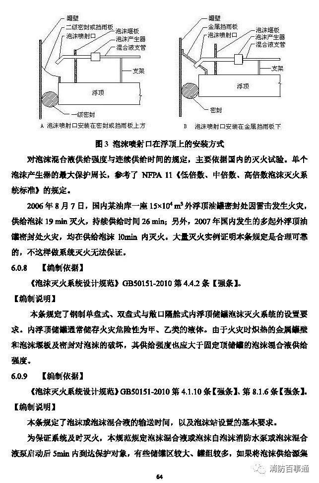2 對于水溶性甲、乙、丙類液體和其它對普通泡沫有破壞作用的甲、乙、丙類液體固定頂儲罐,應(yīng)為液上噴射系統(tǒng)或半液下噴射系統(tǒng);