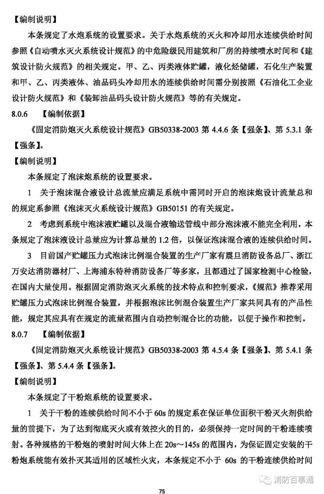 4 用于撲救非水溶性可燃液體火災(zāi)的泡沫-水噴淋系統(tǒng)、泡沫槍系統(tǒng)、泡沫炮系統(tǒng),其水成膜泡沫液在緩釋放時的抗燒時間不應(yīng)小于10min.;