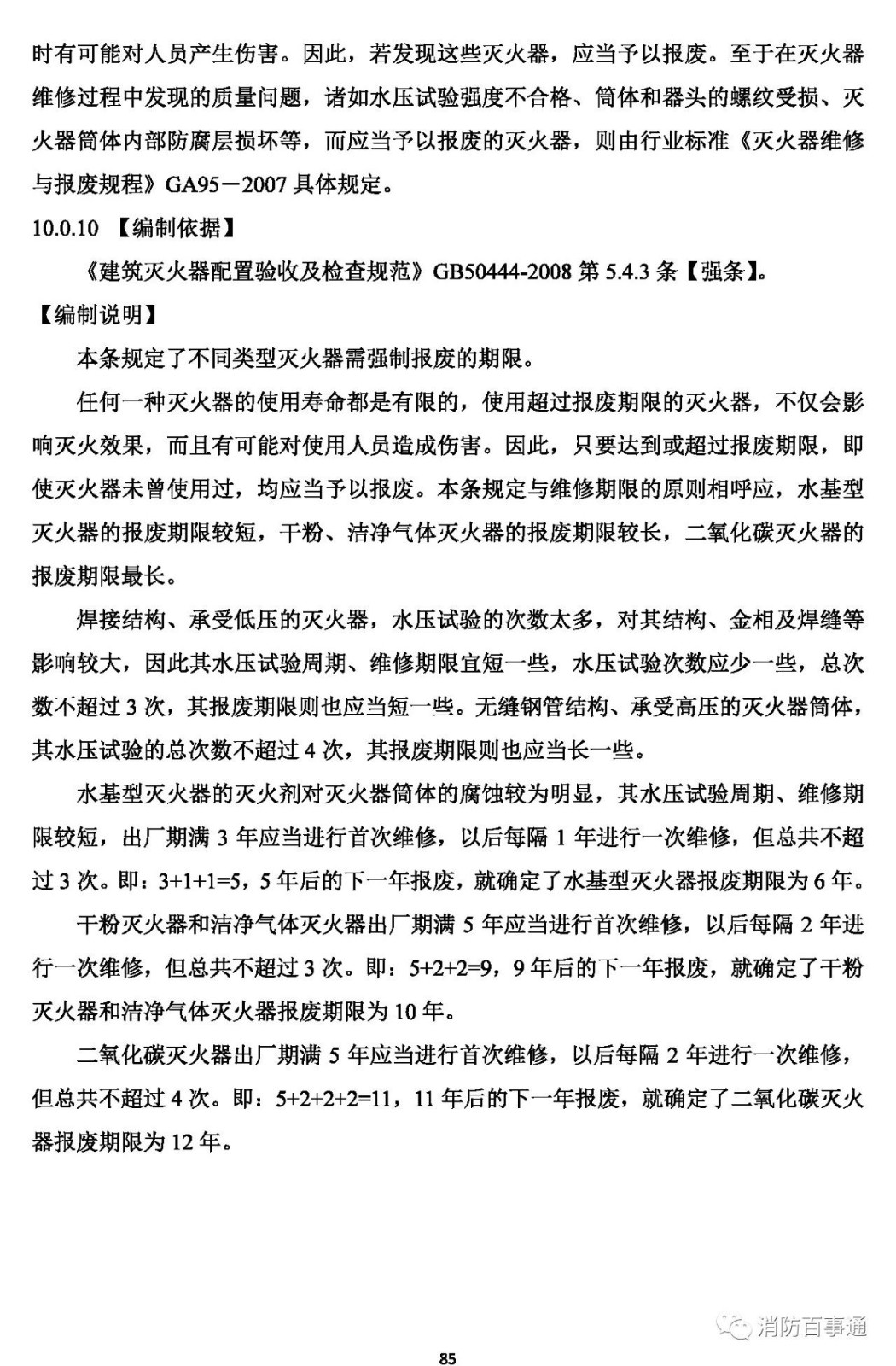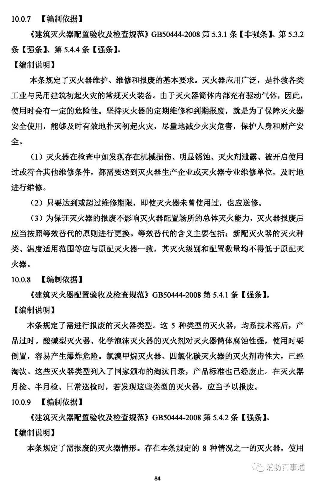 10.0.8 滅火器應(yīng)按規(guī)定定期維護、維修和報廢。滅火器報廢后,應(yīng)按照等效替代的原則進行更換。