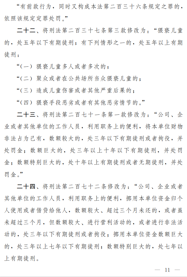 第十三屆全國人大常委會第二十二次會議對《中華人民共和國刑法修正案(十一)(草案二次審議稿)》進(jìn)行了審議,現(xiàn)公布《中華人民共和國刑法修正案(十一)(草案二次審議稿)》全文。