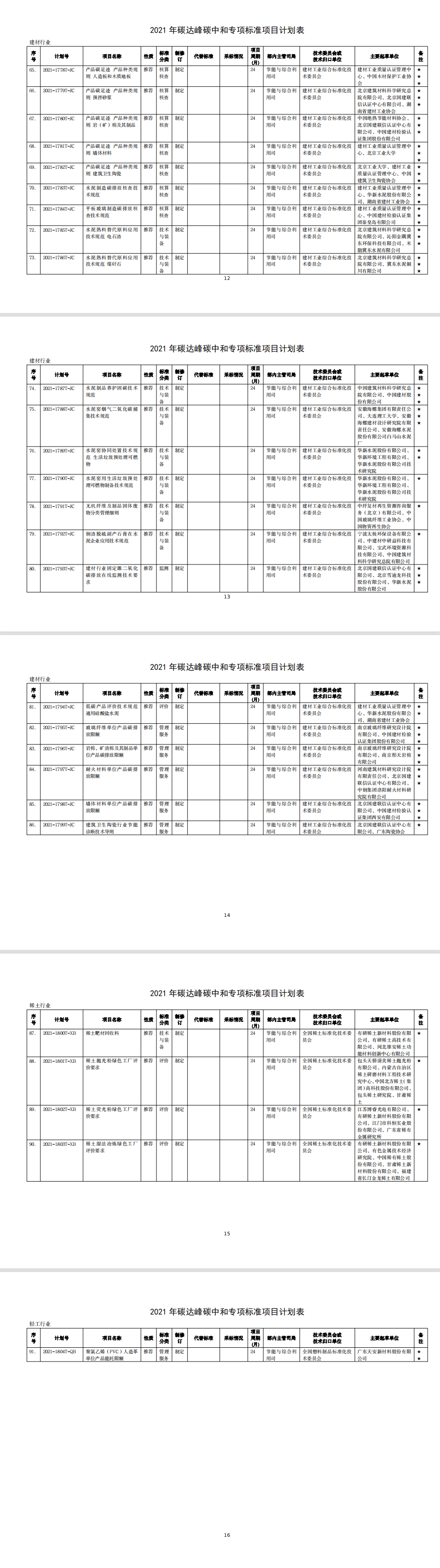 為發(fā)揮標(biāo)準(zhǔn)在推進(jìn)工業(yè)領(lǐng)域碳達(dá)峰碳中和工作的引領(lǐng)和規(guī)范作用,我部編制完成了2021年碳達(dá)峰碳中和專(zhuān)項(xiàng)行業(yè)標(biāo)準(zhǔn)制修訂項(xiàng)目計(jì)劃?,F(xiàn)印發(fā)給你們,請(qǐng)認(rèn)真組織落實(shí)。有關(guān)事項(xiàng)通知如下: