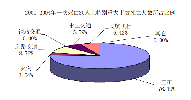 2001年平均 2.5天發(fā)生一起一次死亡10人以上特大事故,2002年-2004年平均2.8天發(fā)生一起一次死亡10人以上事故。其中: