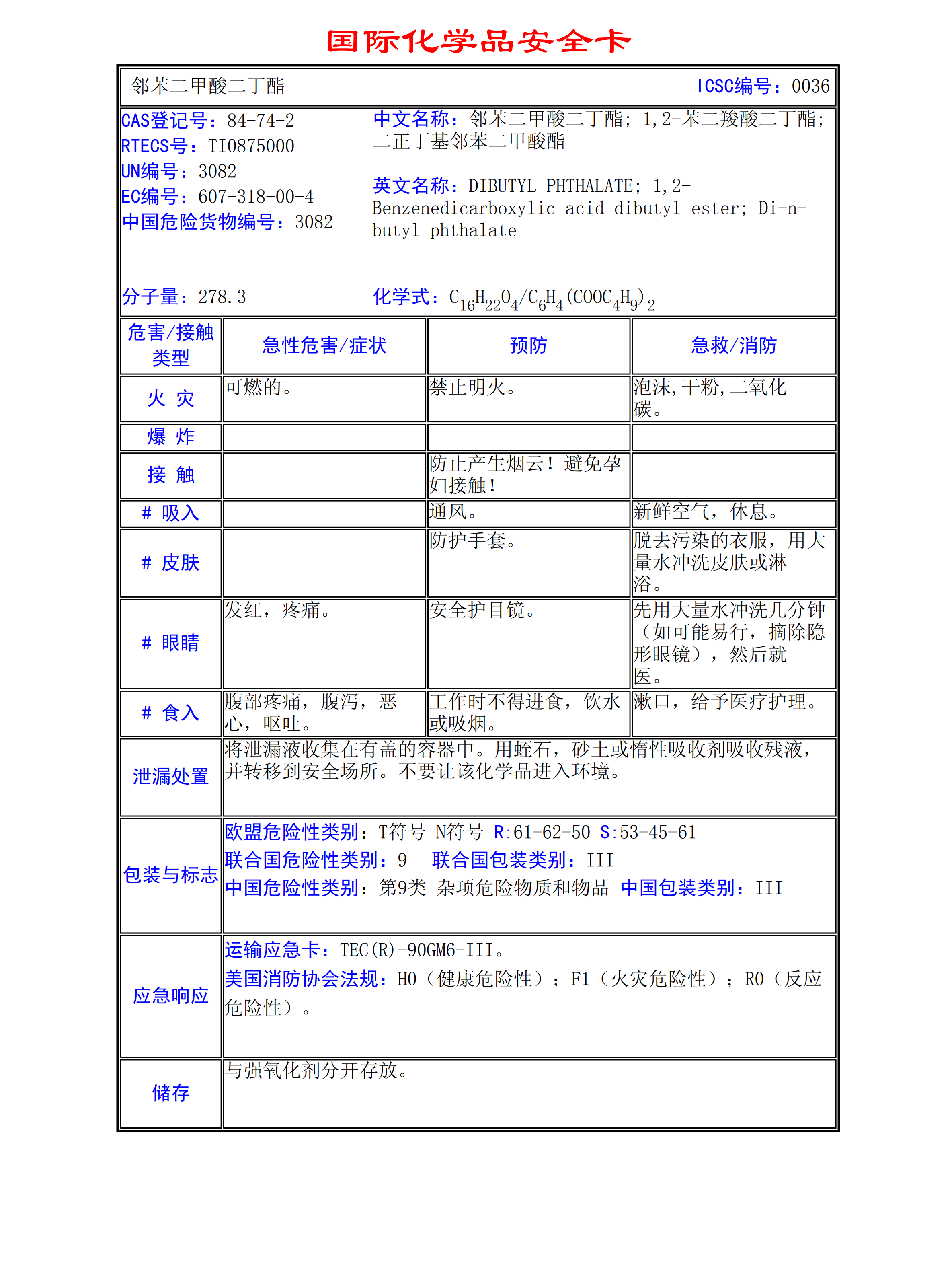 鄰苯二甲酸二丁酯MSDS