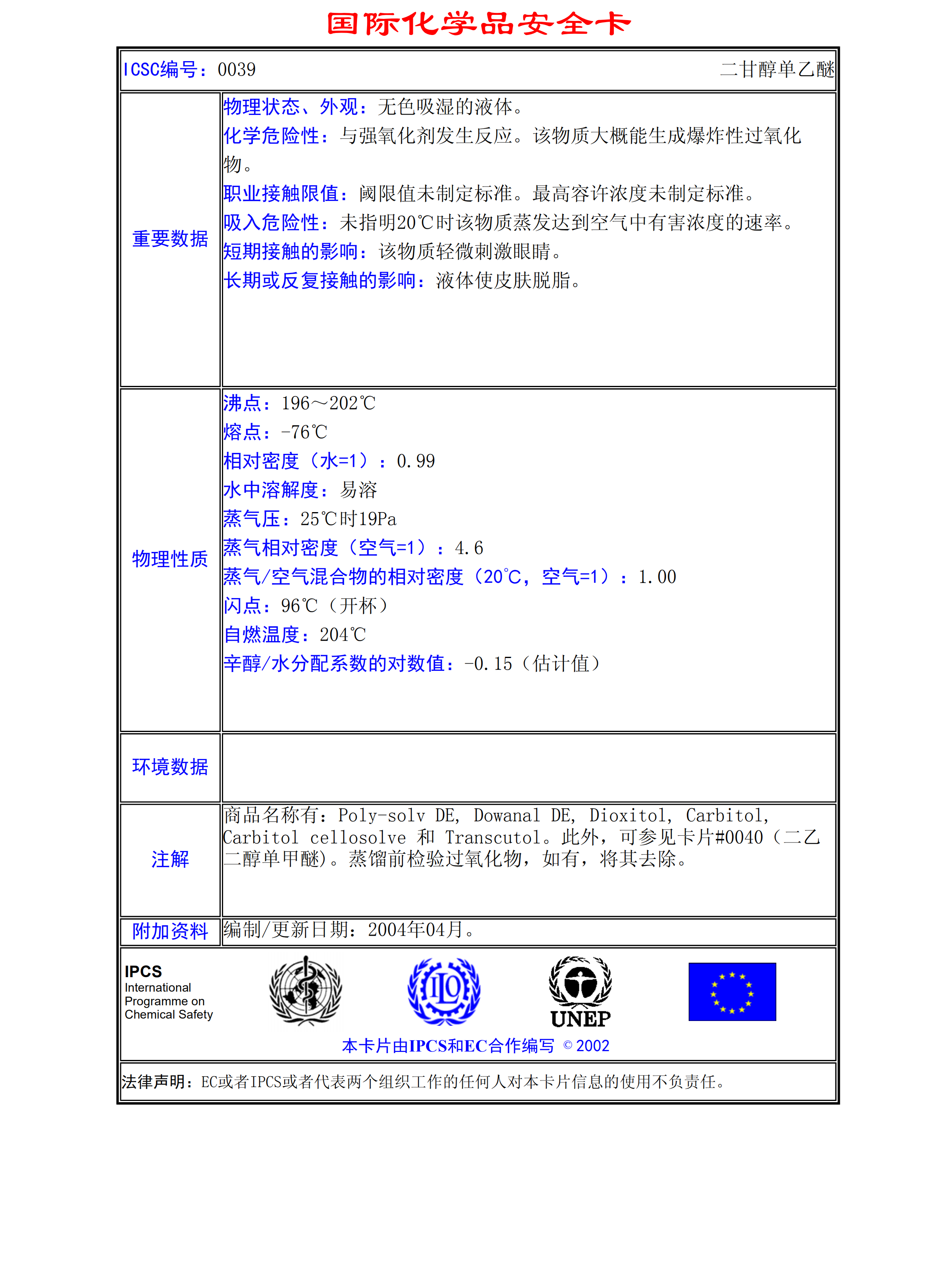二甘醇單乙醚MSDS