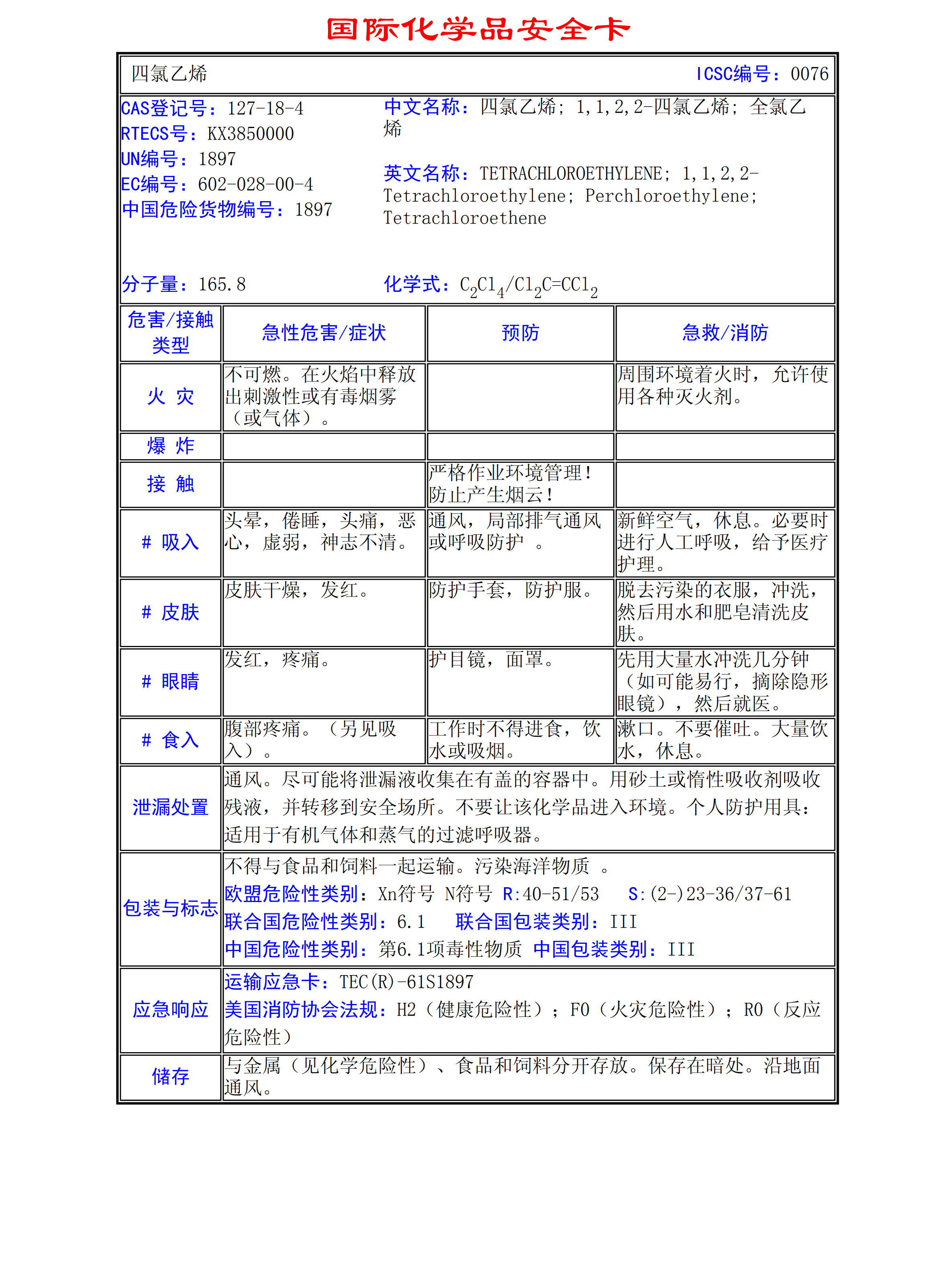 四氯乙烯MSDS