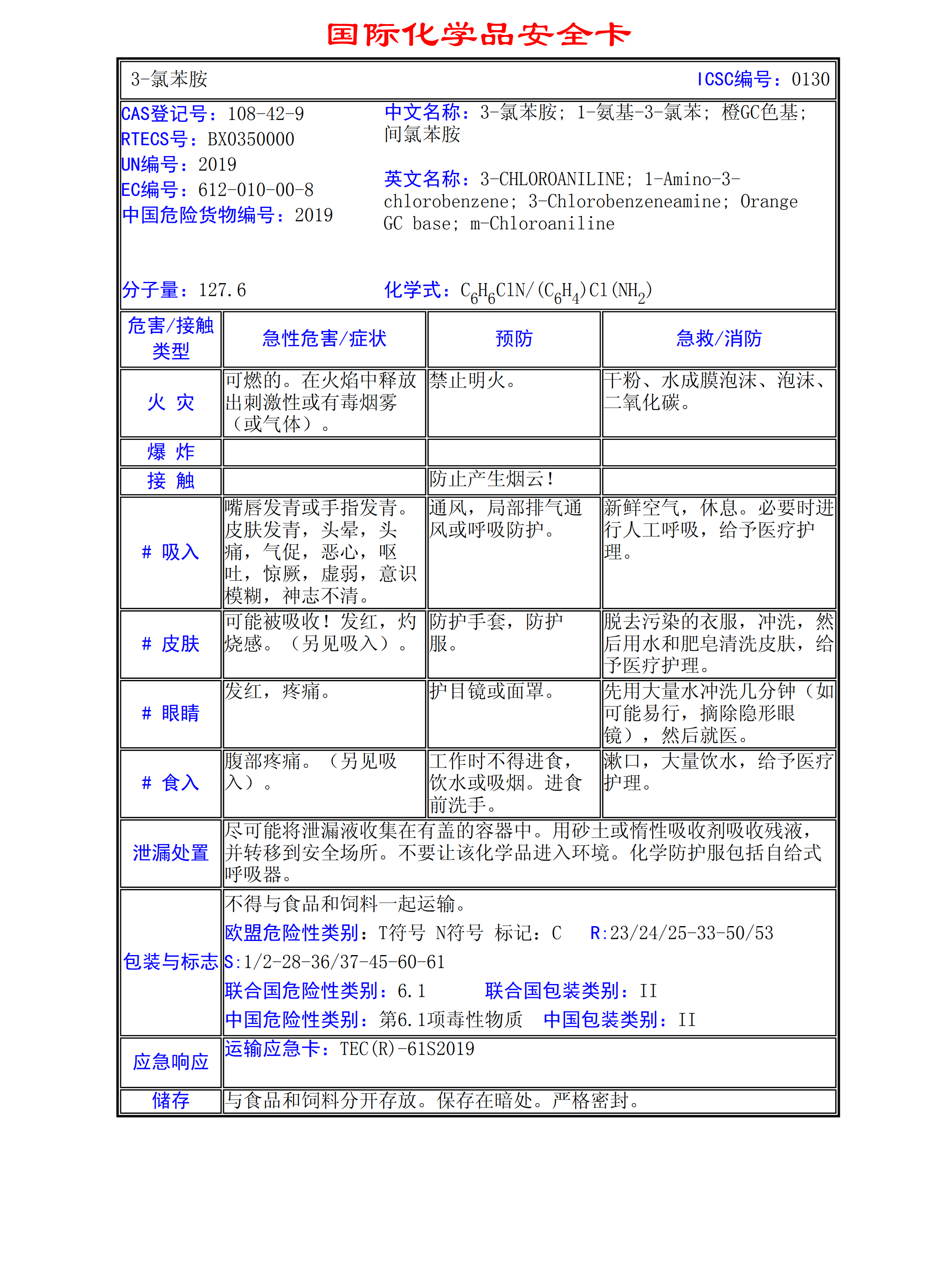 3-氯苯胺MSDS