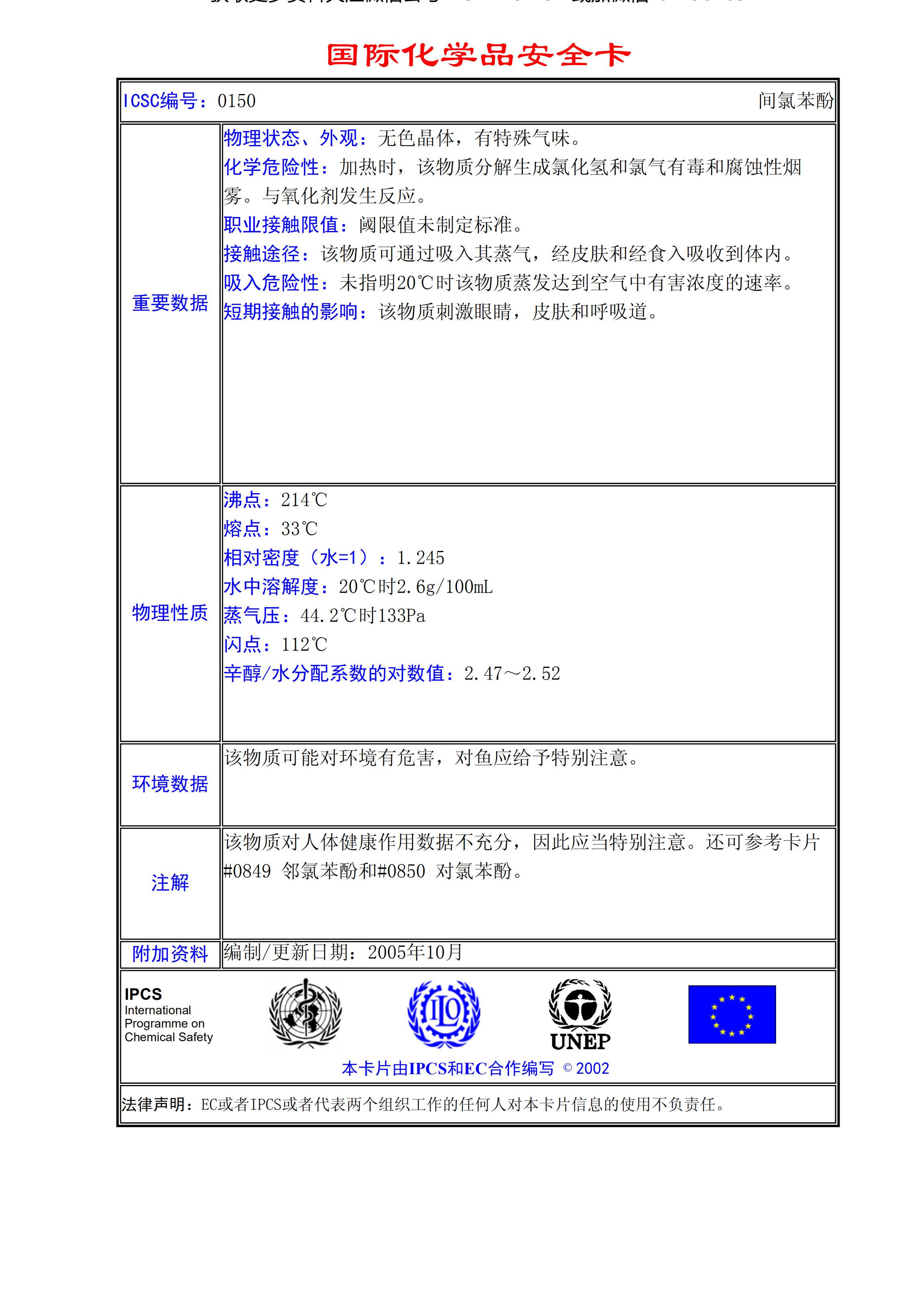 間氯苯酚MSDS