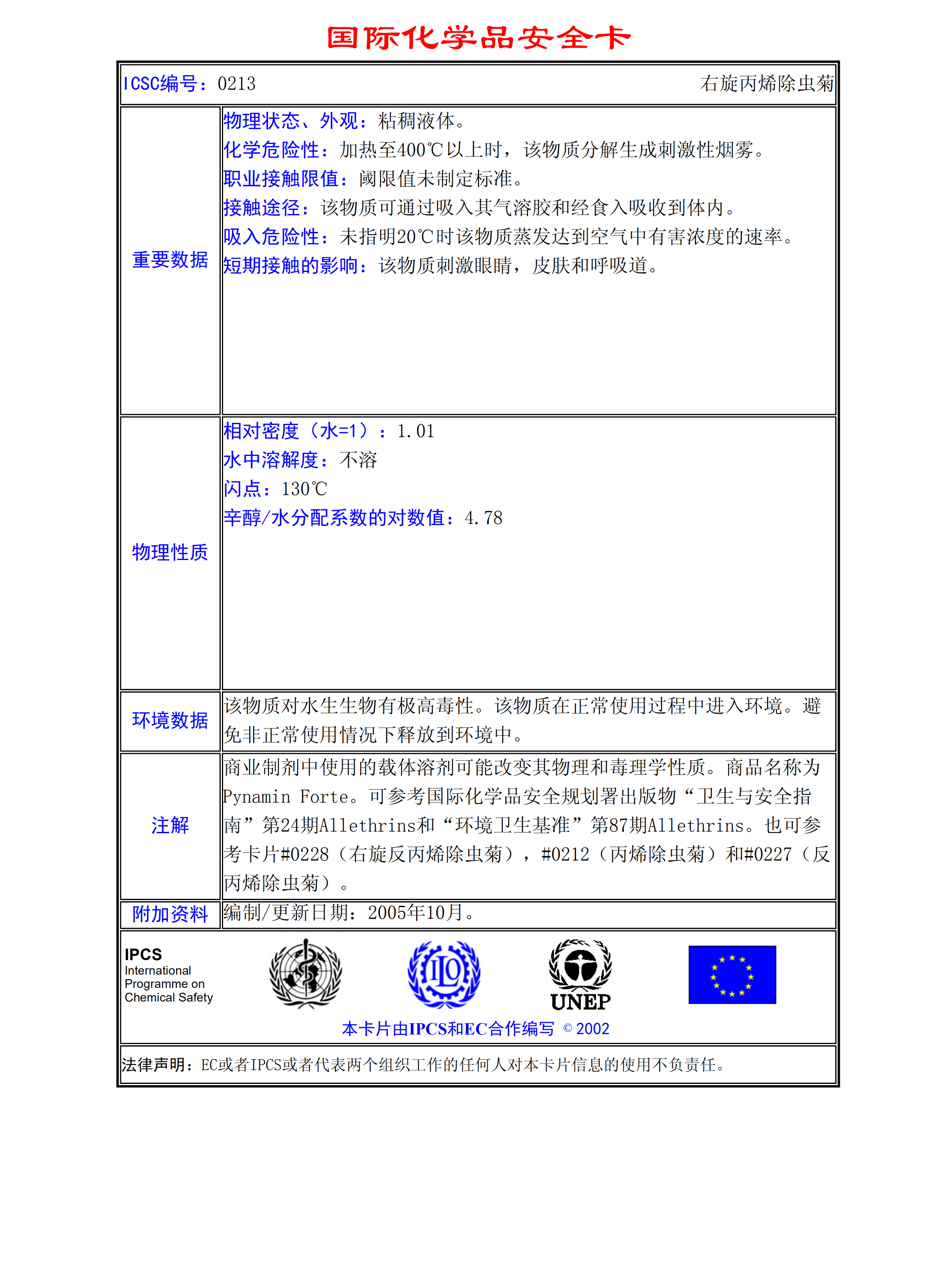 丙烯除蟲(chóng)菊MSDS