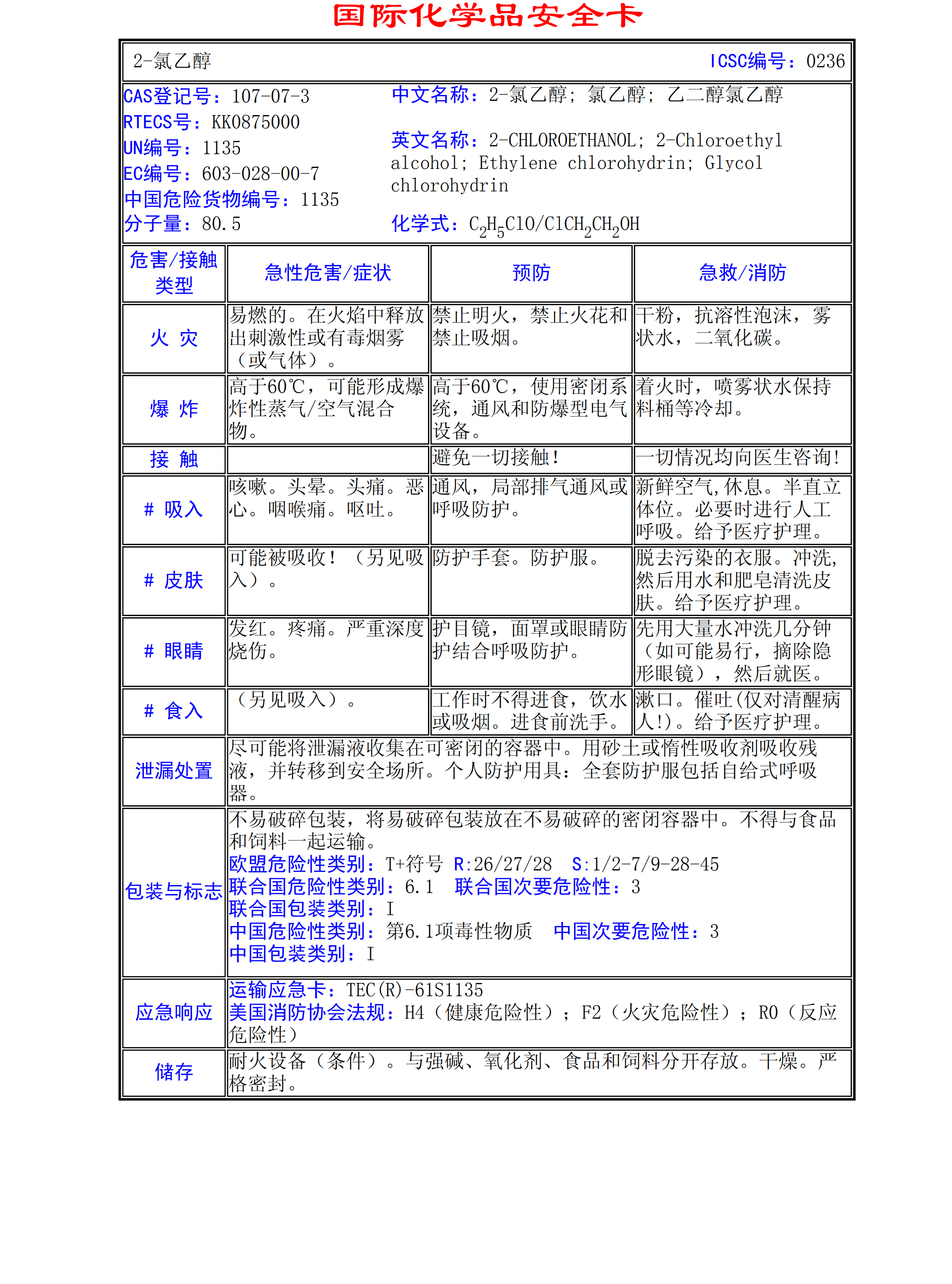 2-氯乙醇MSDS