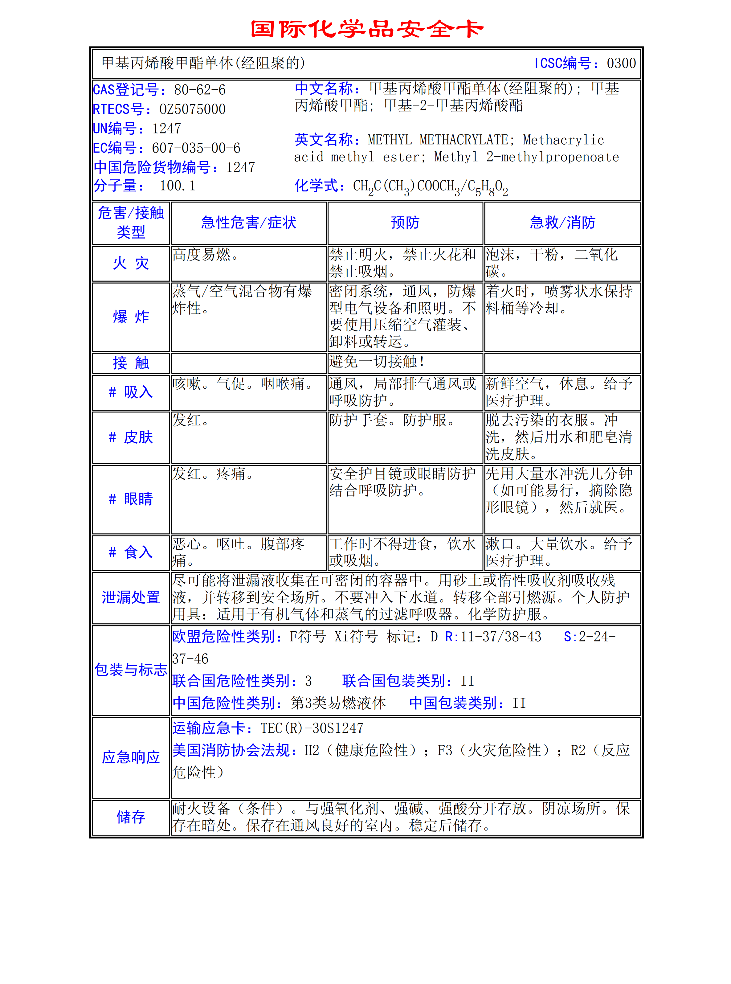 甲基丙烯酸甲酯單體(經(jīng)阻聚的)MSDS